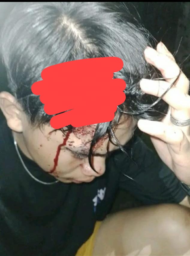 Korban mengalami babak belur di sertai kepala bocor akibat lemparan benda keras oleh pelaku.