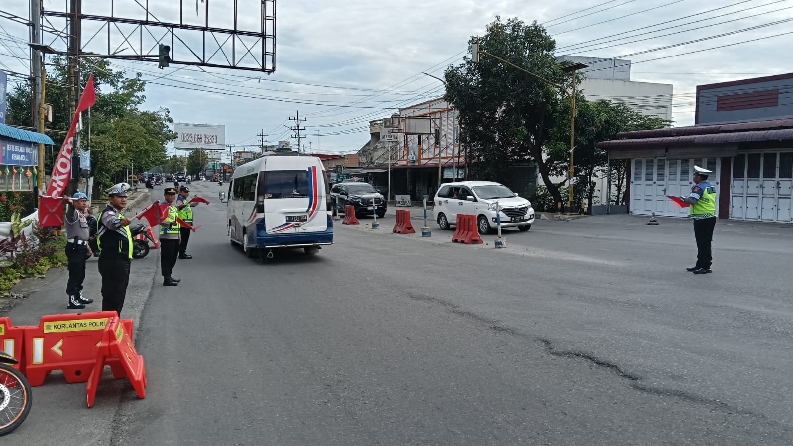 Polres Tebing Tinggi Melakukan Pengaturan Lalu Lintas dan Live Report di Simpang Beo