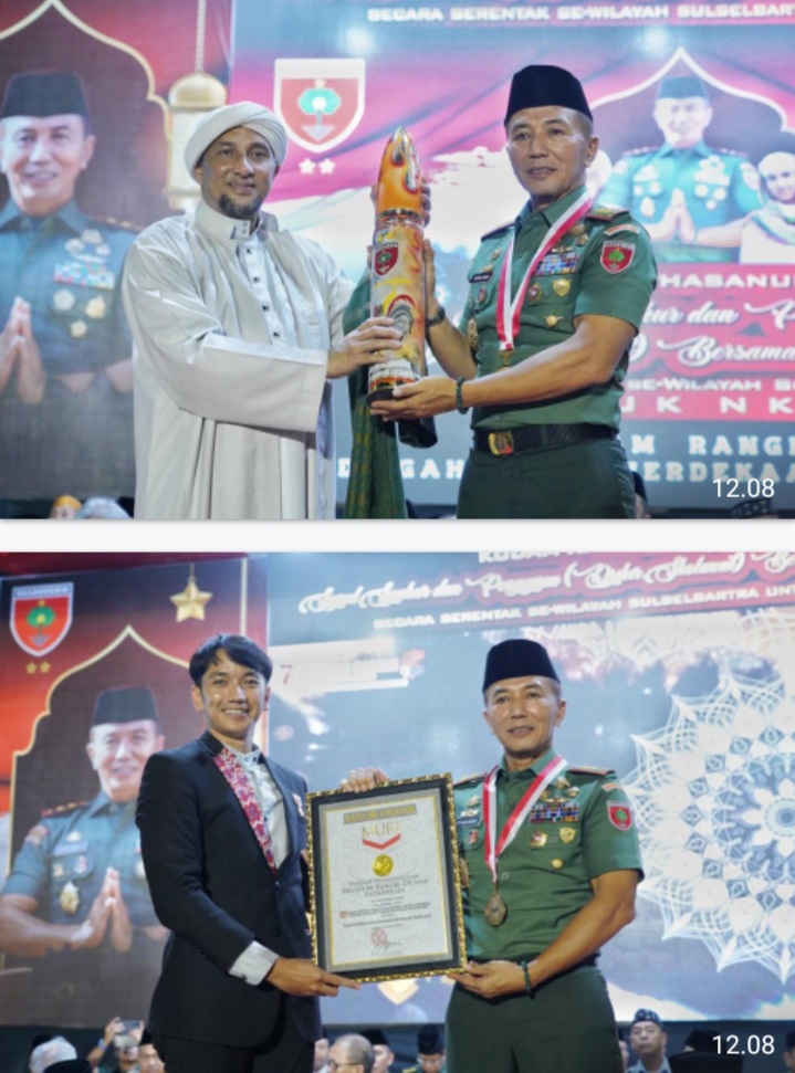 Makassar - Malam peringatan HUT ke-78 RI, Rekor Museum-Dunia Indonesia (MURI) harus menerbitkan piagam penghargaan atas rekor ciptaan karya unik dan superlatif yang dilakukan oleh salah satu petinggi di lingkungan TNI Angkatan Darat.