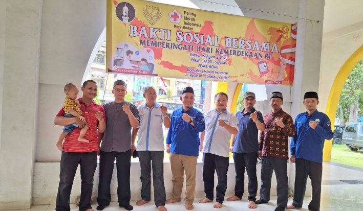 Medan - Solidaritas Kebangsaan RI kembali mengadakan Bakti Sosial Bersama JAI Sumut dan PMI Kota Medan di Masjid Mubarak, Pasar III Krakatau, Medan.