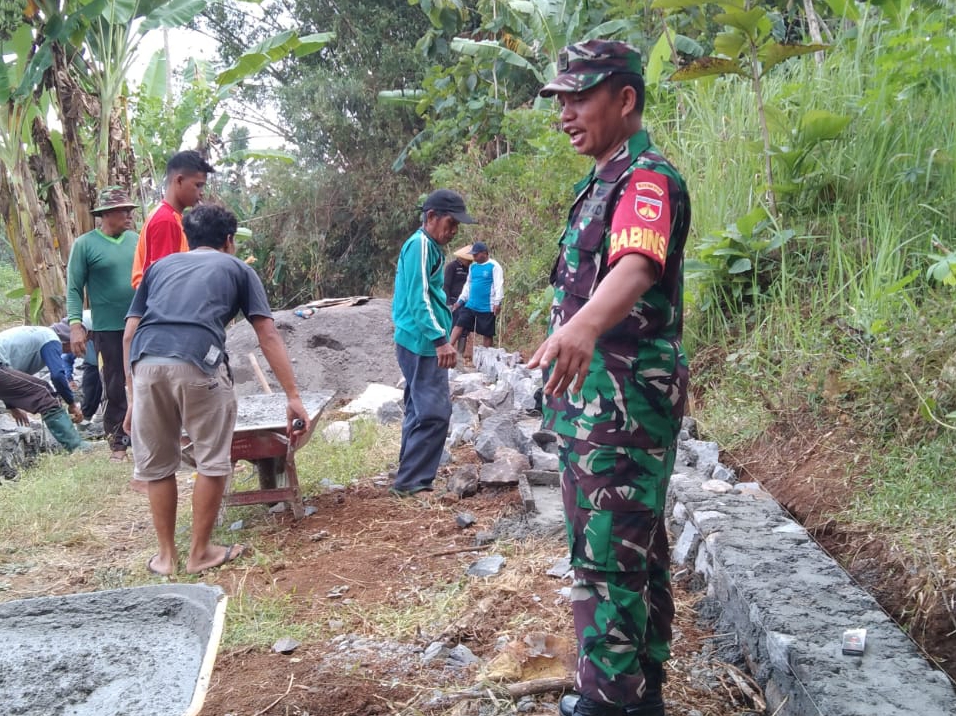 Babinsa Nogosari Turut Serta Karya Bhakti Bangun Talud