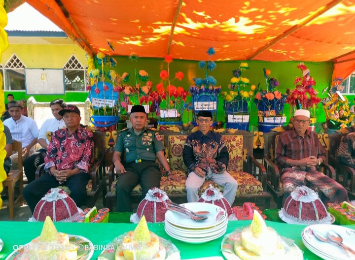 Gowa - Danramil 1409-07/Tompobulu Kapten Inf Irhan Sijaya menghadiri Peringatan Maulid Nabi Muhammad SAW di Ponpes Attarbiyah Lingkungan Pangawarrang Kelurahan Lauwa Kecamatan Biringbulu Kabuaten Gowa, Kamis, (28/9/23).