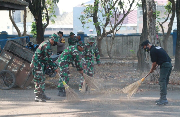 Puluhan Tentara dari Kodim Sragen Membersihkan Terminal Pilangsari