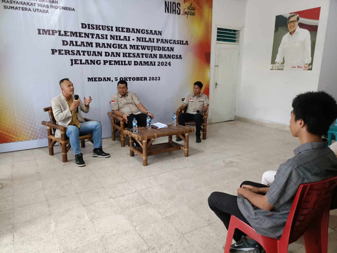 Sumut - Dalam rangka menyambut Pemilihan Umum (Pemilu) tahun 2024, Dewan Pimpinan Daerah Himpunan Masyarakat Nias Indonesia Sumatera Utara (DPD HIMNI Sumut) gelar diskusi kebangsaan di Kantor DPD HIMNI Sumut, Jalan Terompet No.20, Kelurahan Titi Rantai, Kecamatan Medan Baru, Kota Medan, Kamis (05/10/2023) sore.