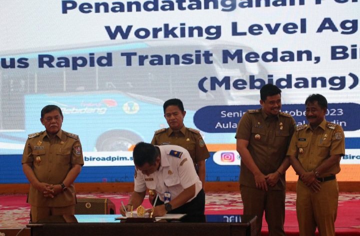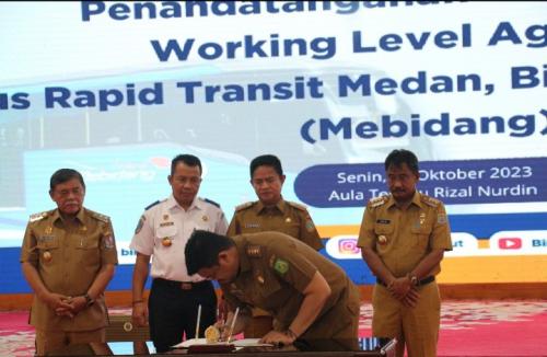 Penandatanganan ini dilakukan oleh Sekretaris Direktorat Jenderal Perhubungan Darat, Amirulloh, Pj Gubernur Sumatera Utara, Hassanudin, bersama Walikota Medan, Bobby Nasution, Walikota Binjai, Amir Hamzah, serta Bupati Deli Serdang, Ali Yusuf Siregar.