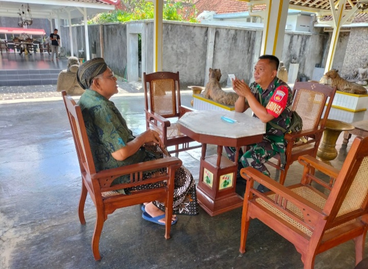 Surakarta - Babinsa Kelurahan Jayengan Koramil 03/serengan Kodim 0735/Surakarta Serka Priyanto melaksanakan kegiatan Komunikasi Sosial (Komsos) dengan KRA Hardjosoewarno selaku tokoh budaya dan pemilik rumah budaya hardjonegaran dikelurahan Jayengan bertempat di jl. Yos Sudarso no.175 Jayengan Serengan Kota Surakarta.