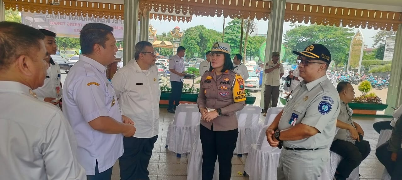Tebing Tinggi - Kasat Lantas Polres Tebing Tinggi AKP Dhoraria Simanjuntak menghadiri kegiatan Apel Kendaraan Dinas Pemerintah Kota Tebing Tinggi Tahun 2023 di lapangan Sri Mersing Jalan Sutomo Kota Tebing Tinggi, Rabu (18/10/23) sekitar pukul 10.00.WIB.
