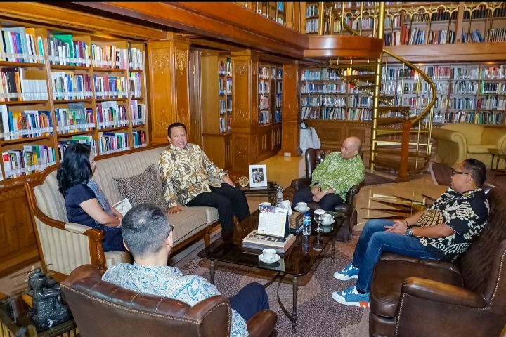 Jakarta - Ketua MPR RI sekaligus Wakil Ketua Umum Partai Golkar dan Ketua Umum Ikatan Motor Indonesia (IMI) Bambang Soesatyo bersama putera Presiden RI ke-3 BJ Habibie, Ilham Habibie mematangkan rencana pendirian Museum Mercedes Benz BJ Habibie di Museum Otomotif Indonesia (MOI) yang rencananya akan dibangun di kawasan Taman Mini Indonesia Indah (TMII) Jakarta Timur dan Pameran khusus mobil-mobil Mercedes Bens koleksi BJ Habibie, baik yang ada di Jakarta maupun yang masih berada di Jerman dan beberapa tempat lainnya. Pameran rencananya akan diselenggarakan awal tahun depan di Jakarta Hilton Convention Center (JHCC).