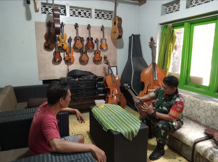 Surakarta - Babinsa Kelurahan Danukusuman Koramil 03/Serengan Kodim 0735/Surakarta Sertu Rochani melaksanakan kegiatan Anjangsana atau Komsos dengan Bapak Kabul pengusaha Kerajinan Gitar di jln. Tejomoyo no 18 di Rt 02 Rw 07 Danukusuman Serengan Kota Surakarta, Sabtu (21/Okt/2023).