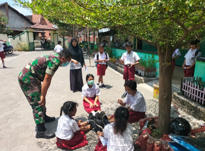 Surakarta - Babinsa Kelurahan Jayengan Koramil 03/Serengan Kodim 0735/Surakarta Serka Priyanto jadi sahabat siswa siswi dan berikan motivasi serta Stop Bullying kepada adik-adik Sekolah Dasar Negeri Kartopuran 01 Jayengan untuk memacu semangat para Murid Sekolah Dasar yang ada diwilayah Jayengan Serengan Kota Surakarta, Selasa (24/10/2023).
