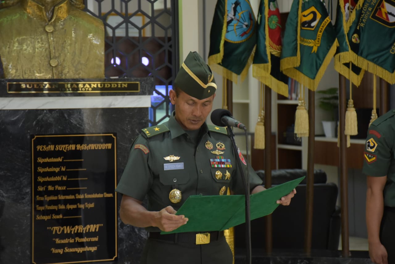 Kasdam XIV/Hsn Wakili Pangdam Pimpin Tradisi Penerimaan Warga Baru Kodam XIV/Hsn