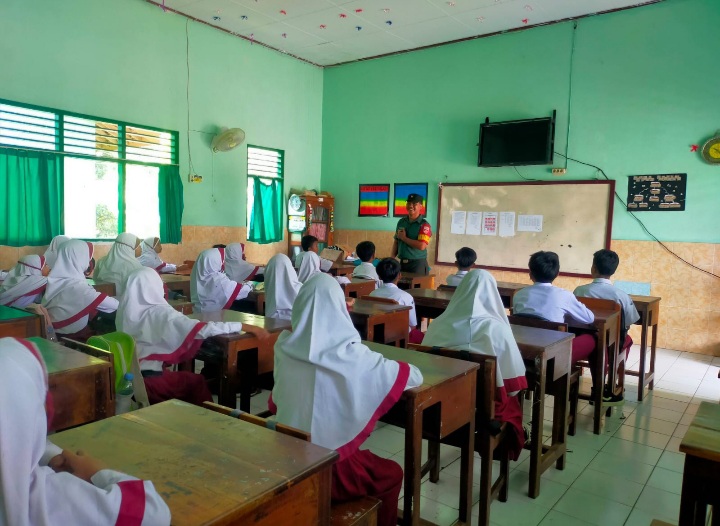 Tumbuhkan Cinta Tanah Air, Babinsa Karangjati Bekali Wasbang Siswa Siswi Min 8 Sragen
