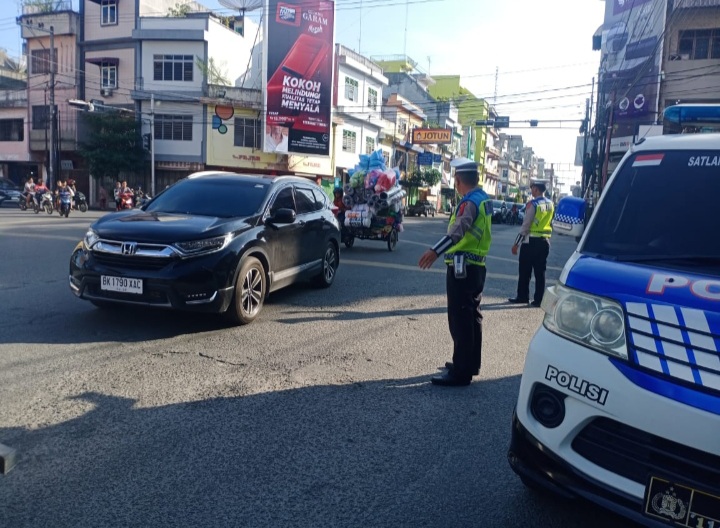 Cegah Kemacetan, Sat Lantas Polres Tebing Tinggi Giat Atur Lalu Lintas