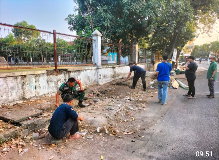 Jelang Gelar Budaya Jarwana, Babinsa Jayengan dan Perangkat Kelurahan Kerja Bakti