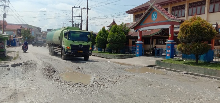 "Rusaknya sudah parah. Digenangi air jika musim hujan begini macam kolam ikan patin. Kalau panas berdebu bikin sesak pernapasan," kata Rosni.(Ridhomagribi)