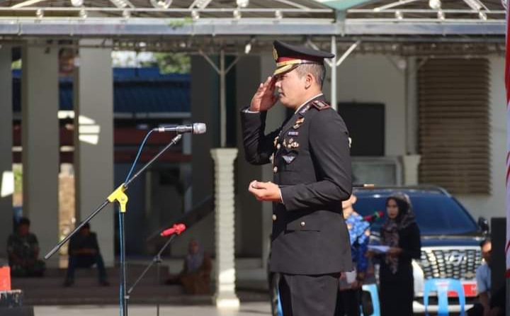 Madina - Kapolres Mandailing Natal (Madina) AKBP HM. Reza C.A.S memimpin upacara peringatan hari pahlwan di lapangan masjid agung nur ala nur, desa Parbangunan, Kecamatan Panyabungan, Jum'at (10/11/2023).