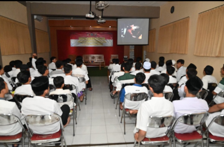 Sukoharjo - Dalam rangka peringatan Hari Pahlawan,  Kodim 0726/Sukoharjo kembali melaksanakan kegiatan Wawasan Kebangsaan di Ponpes Al Mukmin, Ngruki Ds. Cemani Kec. Grogol, Kab. Sukoharjo. Kegiatan Wawasan Kebangsaan kali ini dilaksanakan dengan Nonton Bareng Film Perjuangan Janur Kuning yang digelar di Aula Ponpes Al Mukmin Dk. Ngruki, Jumat (10/11/23) pukul 20.30 Wib.
