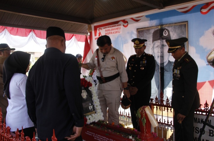 Kutai Kartanegara - Komandan Kodim 0906/Kkr Letkol Inf Jeffry Satria pimpin upacara ziarah ke makam pahlawan Muso Bin Salim yang berada di jalan Mulawarman Desa Muara Kaman Ulu Kecamatan Muara kaman, Jumat 10/11/23.