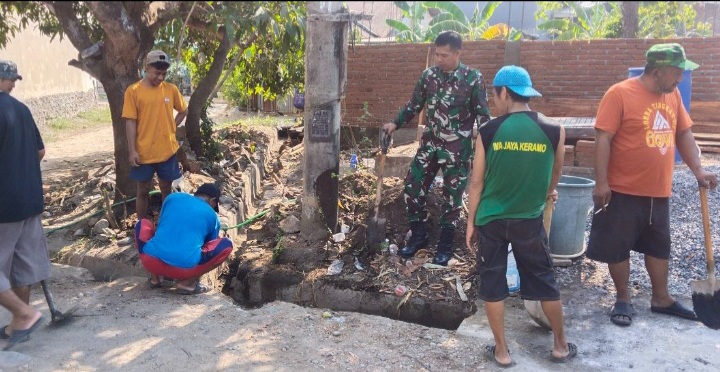 Babinsa Kelurahan Kalebajeng Bersama Warga Laksanakan Kerja Bakti Bersihkan Lingkungan
