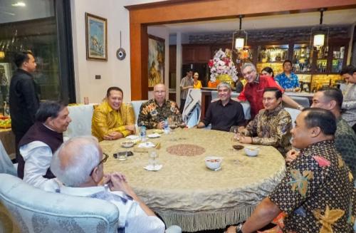Jakarta - Ketua MPR RI sekaligus Wakil Ketua Umum Partai Golkar Bambang Soesatyo menghadiri perayaan Diwali (Deepavali) yang diselenggarakan oleh keluarga besar Harjani, pendiri PK Entertainment yang merupakan promotor konser Coldplay dan penyanyi Ed Sheeran di Indonesia. Perayaan Diwali melambangkan kemenangan kebaikan (Dharma) atas keburukan (Adharma), serta melambangkan perayaan serta harapan manusia.