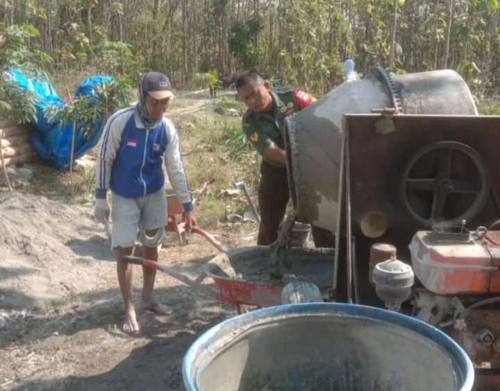 Babinsa Turun Jalan Bantu Pengecoran Jalan Penghubung