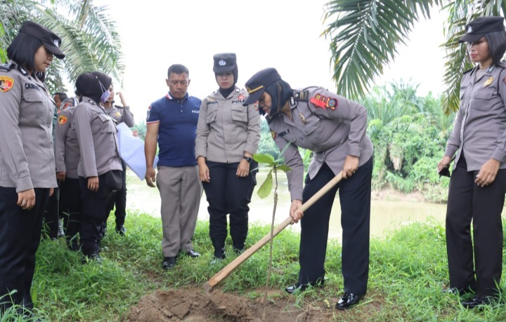 Polwan Polres Tebing Tinggi Turut Tanami Pohon di Pinggiran Sungai Padang