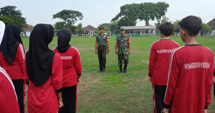 Tingkatkan Disiplin, Babinsa Latih Siswa MTS Negeri 1 Sragen untuk PBB