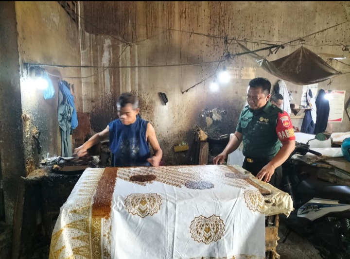 Tidak lupa juga dalam kesempatan tersebut sebagai Babinsa yang ada diwilayahnya juga menekankan tentang dalam bekerja tetap hati hati dan waspada apalagi dalam pengerjaan para pekerja menggunakan perapian untuk pewarna cap sehingga tidak menutup kemungkinan dapat terjadi kebakaran dari percikan api apalagi didalam tempat tersebut banyak kain yang dapat dengan mudah terbakar.