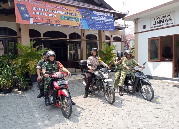 Surakarta - Babinsa Kelurahan Danukusuman Koramil 03/Serengan Kodim 0735/Surakarta Sertu Rochani dan Serda Tito melaksanakan Pemantauan Perkembangan situasi wilayah bersama Bhabinkamtibmas Brigadir Dimas serta para Satlinmas Danukusuman Serengan Kota Surakarta, (01/12/2023).
