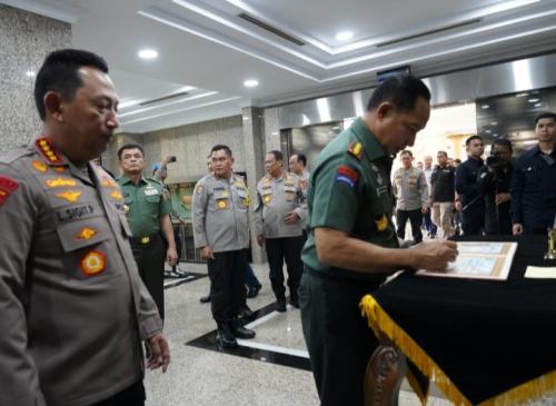 Lebih lanjut Panglima TNI menyampaikan pentingnya sinergitas diantara TNI dan Polri seperti yang telah terjalin selama ini. Bak gayung bersambut, Kapolri mengapresiasi hal yang disampaikan Panglima TNI. "Ini sudah tidak bisa ditawar-tawar lagi, ada beberapa hal yang telah terintegrasi selama ini di antaranya pendidikan pembentukan, pengamanan. Kedepannya kita gelar latihan bersama menjelang tugas operasi ke daerah konflik. Hal yang paling utama bersama-sama dalam pengamanan Pemilu Damai yang akan datang,” ujar Kapolri.