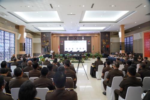 "Tingkatkan terus jiwa korsa, rapatkan barisan, dan tetap fokus menyelesaikan semua tugas dan kewajiban dengan penuh dedikasi dan integritas. Buktikan dengan kinerja yang baik biar masyarakat yang menilai," ujar Jaksa Agung.