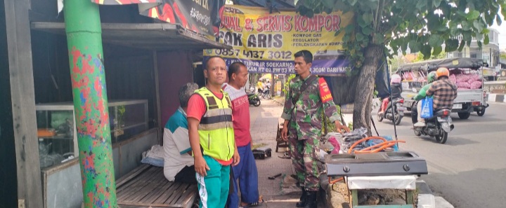 Surakarta - Peduli dengan warga binaannya, Babinsa Kelurahan Joyontakan  Koramil 03 Serengan Kodim 0735 Surakarta Sertu Harnawan dan Koptu Rudy memberikan sosialisasi kepada warga RT. 03 RW 04 Joyotakan Serengan Kota Sutakarta yang terkena dampak program pemerintah pembangunan parapet, Rabu pukul 09.00 Wib (06/12/2023)