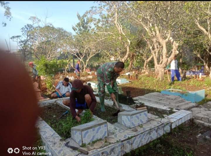 Babinsa Bersama Warga Bersihkan Tempat Pemakaman Umum