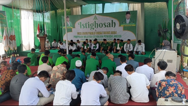 Medan - Jelang tahapan Pemilihan Umum (Pemilu) Pimpinan Wilayah Gerakan Pemuda Ansor Provinsi Sumatera Utara (PW GP Ansor Sumut) gelar istighosah dan deklarasi Pemilu damai tahun 2024 di Komplek Veteran, Jalan Vetpur Raya I, Dusun XI, Desa Medan Estate, Kecamatan Percut Sei Tuan, Kabupaten Deli Serdang, Provinsi Sumatera Utara, Sabtu (16/12/2023) sore.