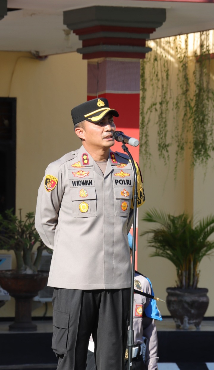 Buleleng - Kapolres Buleleng AKBP Ida Bagus Widwan Sutadi, S.I.K.,M.H., 6yang mengawali tugas di Polres Buleleng pimpin apel di Lapangan Mapolres Buleleng, Senin (18/12/2023).