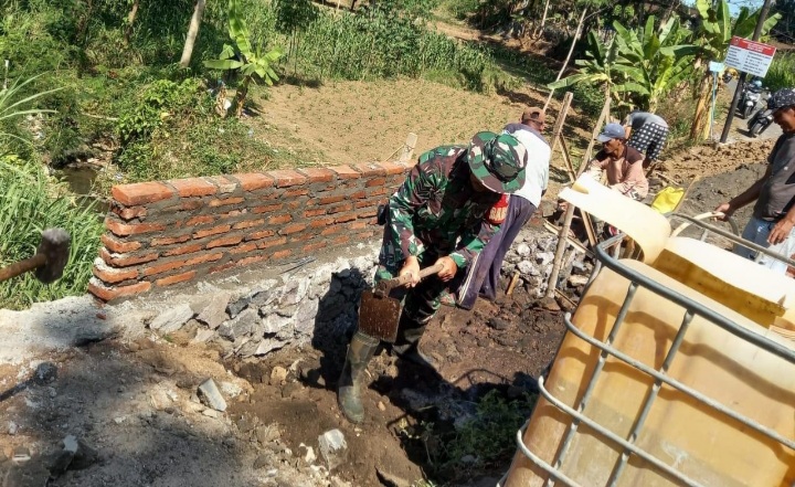 Ciptakan Kemanunggalan TNI dengan Rakyat, Babinsa Gotong Royong Pembangunan Talud