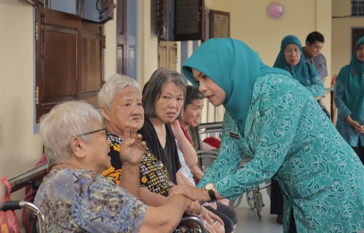 Selain ramah tamah dan pemberian bingkisan kepada lansia, Safriati Safrizal yang disambut para pengurus Panti Bhakti Kasih Siti Anna juga menyempatkan diri untuk meninjau area panti.