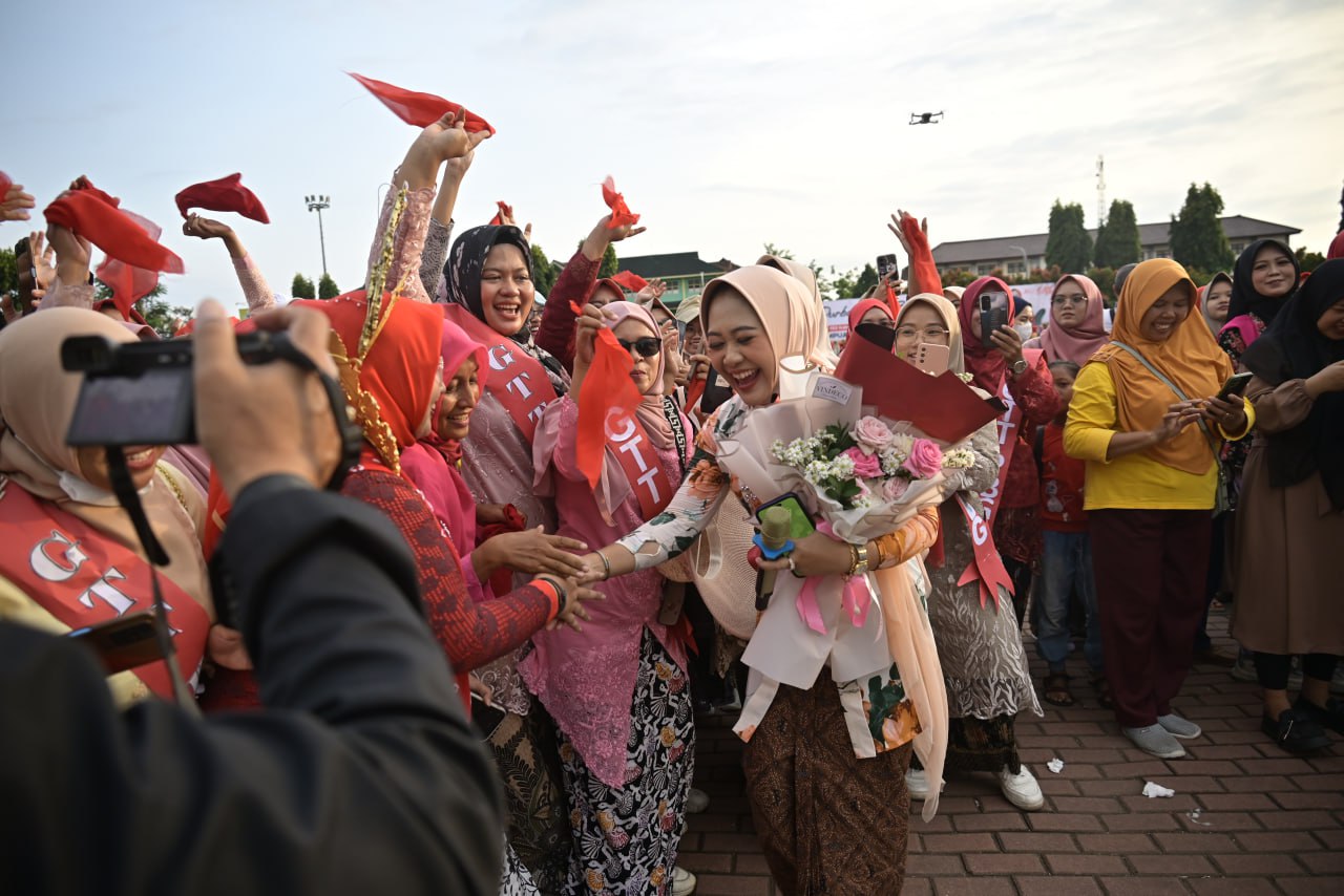 Usai memberikan sambutan, Bupati Tiwi mempersembahkan sebuah lagu berjudul 'Cinta Untuk Mama'. Lagu dinyanyikan bersama putrinya Namira Mikhayla Diansyah serta menyerahkan bunga kepada ibunda Bupati Tiwi, RR Ina Ratnawati Triyono.
