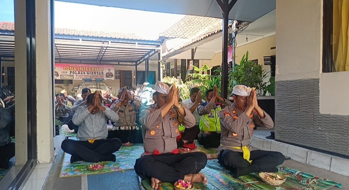 Kegiatan persembahyangan dipimpin oleh Kapolsek Blahbatuh Kompol I Made Tama,S.H.,M.H. didampingi Wakapolsek AKP I Nyoman Gede Budiarta, S.H. serta diikuti oleh Para Kanit/Panit dan Kasi dan Personel Polsek Blahbatuh yang beragama Hindu .