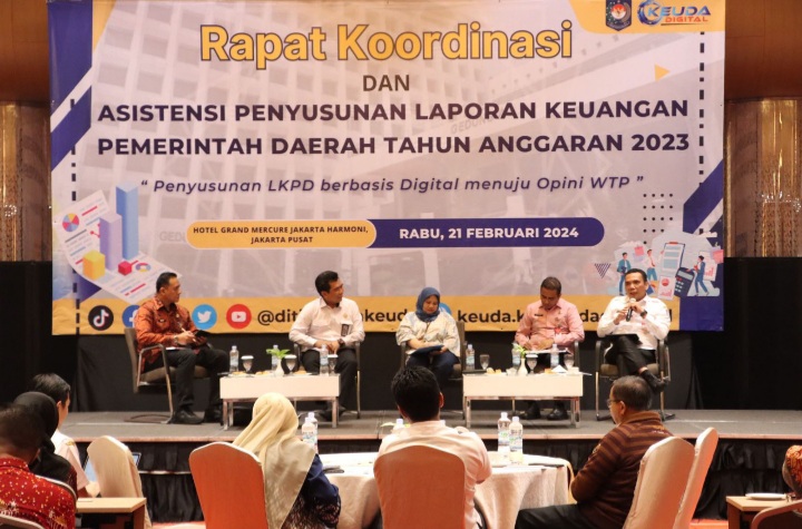 Jakarta - Direktorat Jenderal (Ditjen) Bina Keuangan Daerah (Keuda) Kementerian Dalam Negeri (Kemendagri) menggelar Rapat Koordinasi (Rakor) dan Asistensi Penyusunan Laporan Keuangan Pemerintah Daerah (LKPD) Tahun Anggaran (TA) 2023, Rabu (21/2/2024). Rakor dilaksanakan dalam rangka menguatkan komitmen, menyamakan pemahaman, dan mewujudkan akuntabilitas serta transparansi pertanggungjawaban pelaksanaan Anggaran Pendapatan dan Belanja Daerah (APBD).