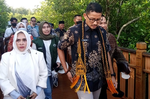 Ayudhia (kanan) bersama dengan Menparekraf Sandiaga Uno di Manggrove Forest Park Kota Langsa Aceh.