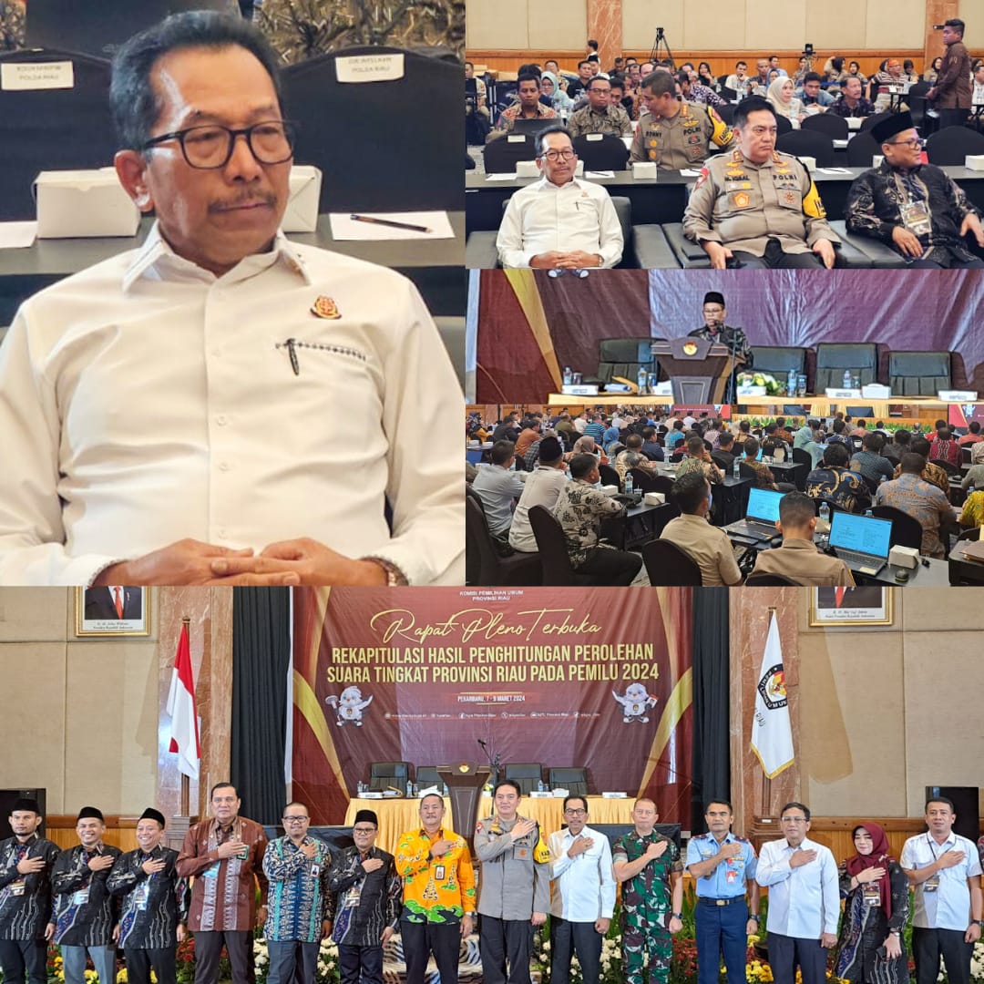Pekanbaru - Kepala Kejaksaan Tinggi Riau Akmal Abbas, S.H., M.H menghadiri Rapat Pleno Terbuka Rekapitulasi Hasi Penghitungan Perolehan Suara Tingkat Provinsi Riau pada Pemilu Tahun 2024.