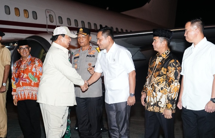 Tiba di Blikpapan, Prabowo disambut Penjabat Gubernur Kaltim Akmal Malik, Forkopimda Kaltim dan Wali Kota Balikpapan Rahmad Mas'ud.