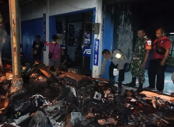 "Saksi melihat kepulan api dan asap kemudian memberi tahu pemilik toko yang datang kemudian mengecek lokasi dan diketahui benar telah terjadi kebakaran," jelas kapolsek.