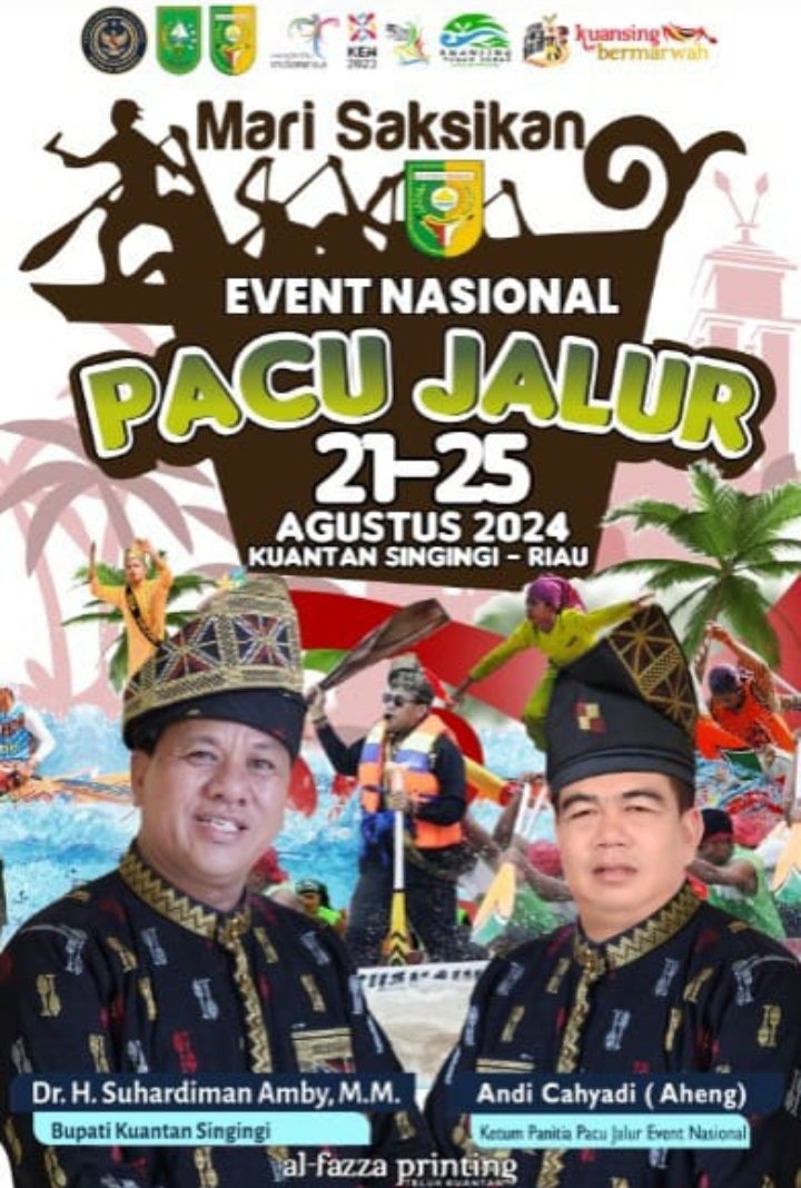 Tahun 2024 Event Nasional Pacu Jalur akan digelar selama lima hari, Terhitung dari tanggal 21-25 Agustus 2024 bertempat di Tepian Narosa Teluk Kuantan.