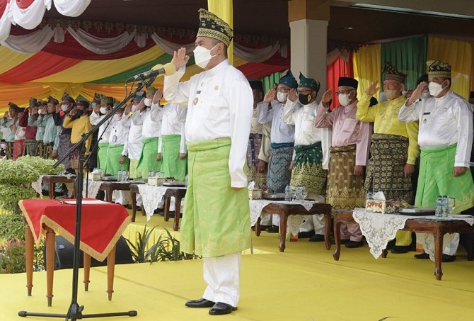 Pekanbaru - Gubernur Riau (Gubri) Syamsuar jadi Inpektur upacara pada Hari Jadi ke 65 Provinsi Riau Tahun 2022 yang jatuh pada  Selasa (9/8/2022).