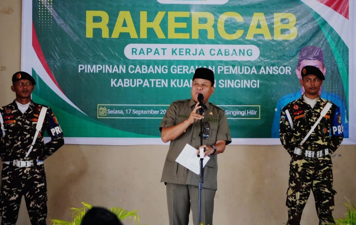 Kuansing - Bupati Kuantan Singingi Dr.H. Suhardiman Amby M.M., pimpin Rapat Kerja Cabang (Rakercab) Pimpinan Cabang Gerakan Pemuda (PC GP) Ansor bisa bermanfaat bagi masyarakat Kuansing, Riau, Selasa (17/9/2024).
