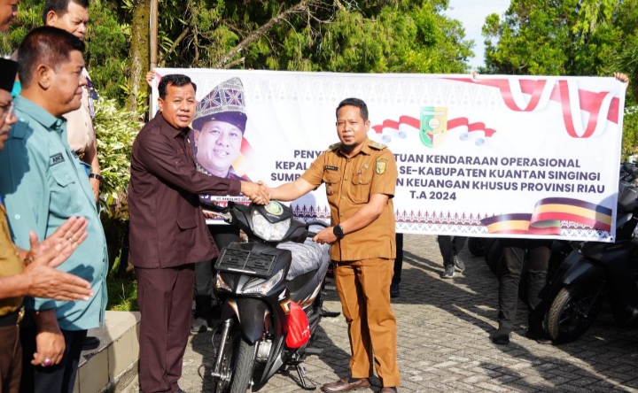 Kuansing - Dalam meningkatkan dan untuk memperkuat Pelayanan Masyarakat di Desa, Bupati Kuantan Singingi Suhardiman Amby menyerahkan 108 kendaraan roda dua, kepada seluruh jajaran Pemerintahan Desa Se-Kuansing, Rabu (18/9/2024).