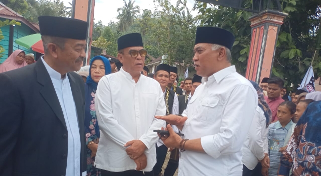Madina - Calon Bupati Mandailing Natal (Madina) Sumut, Harun yang berpasangan dengan Ichwan datangi basis calon Bupati Madina Saipullah yang berpasangan dengan Atika Azmi. Kedatangan itu bukan tanpa sebab, kedatangan itu menghadiri kunjungan calon Gubernur Sumatera Utara Bobby Afif Nasution di Kelurahan Gunung Baringin Kecamatan Panyabungan Timur, Jumat (27/09/2024).