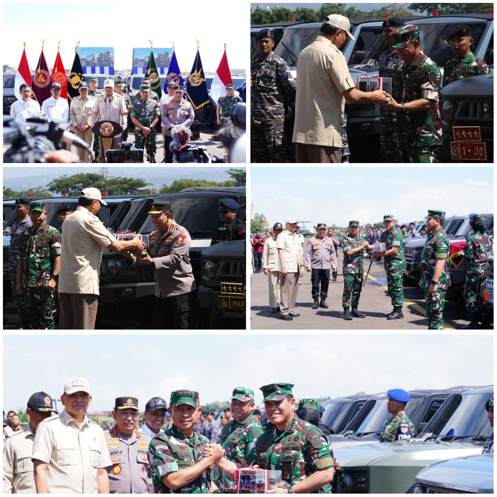 Bandung - Panglima TNI Jenderal TNI Agus Subiyanto bersama Kapolri Jenderal Pol. Listyo Sigit Prabowo menerima penyerahan Kendaraan Khusus (Ransus) Maung MV3 buatan PT. Pindad yang dilakukan secara simbolis oleh Menteri Pertahanan (Menhan) RI Sjafrie Sjamsoeddin, bertempat di Appron Lanud Husein Sastranegara, Bandung, Jawa Barat, Sabtu (01/03/2025). Sebanyak 700 unit Ransus Maung tahap II diserahkan oleh Kementerian Pertahanan RI kepada TNI dan Polri dari total 4.157 unit Maung MV3 yang